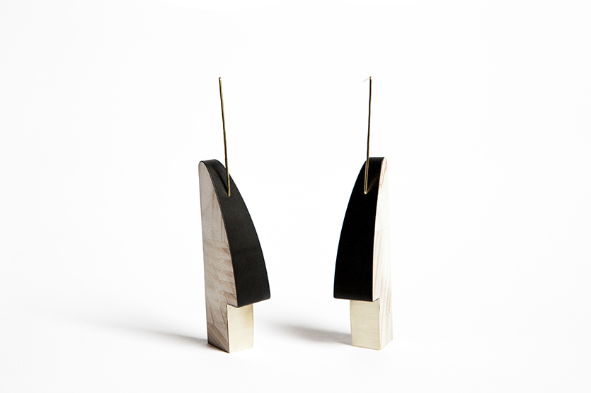 Attraverso tagli razionali i gioielli si presentano come micro architetture. La sezione della cornice viene messa in evidenza attraverso l'uso del colore mentre il laminato di ottone conclude l'oggetto sottolineandone i volumi per effetto della luce che restituisce.